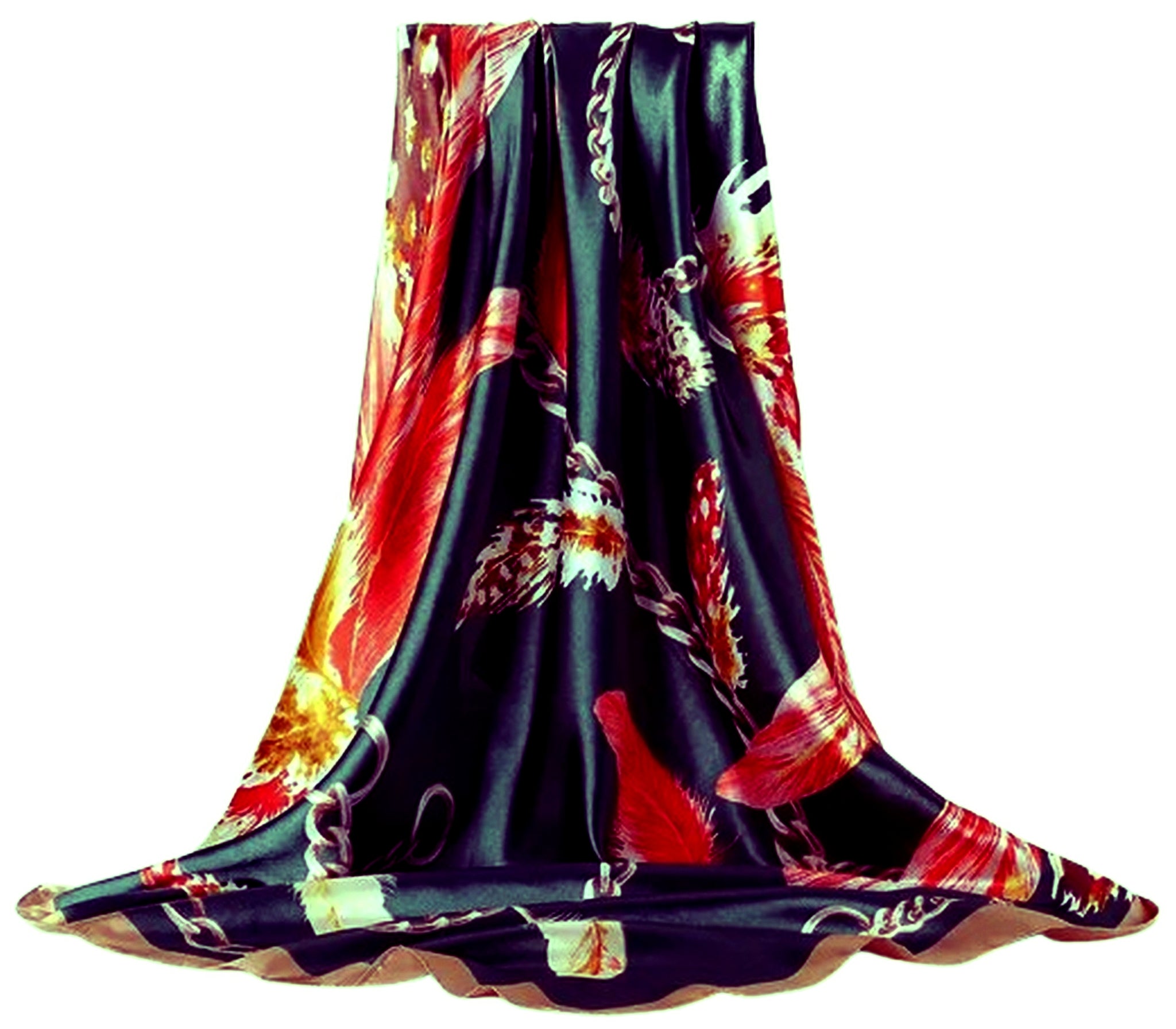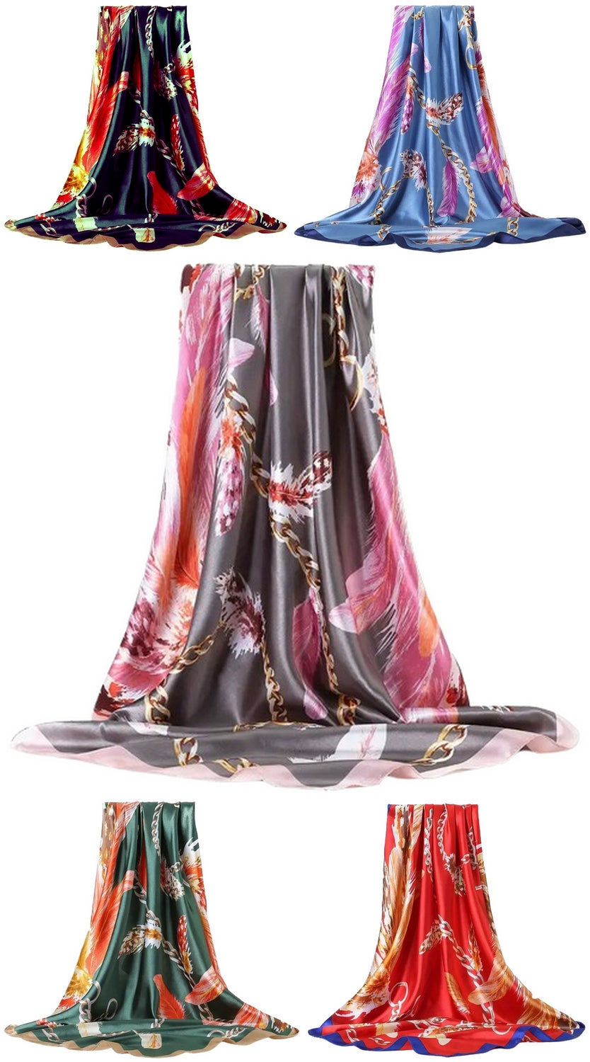 ❖FEATURES: These bandanas are made of polyester satin fabric with silky touch, elegant bright colors, multicolored Feathers and Chains print, soft and silky, light, smooth and comfortable against the skin. Square size, 90cm x 90cm. Large enough to wrap hair overnight and day.