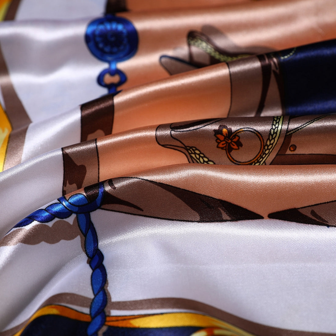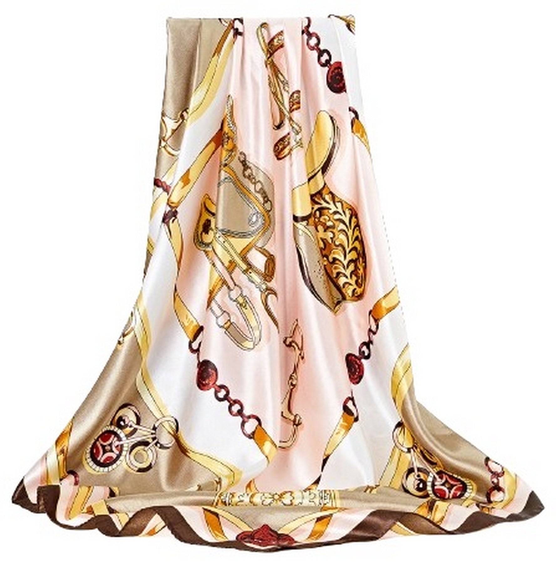 ❖FEATURES: These bandanas are made of polyester satin fabric with silky touch, elegant bright colors designer chains print, soft and silky, light, smooth and comfortable against the skin. Square size, 90cm x 90cm. Large enough to wrap hair overnight and day.