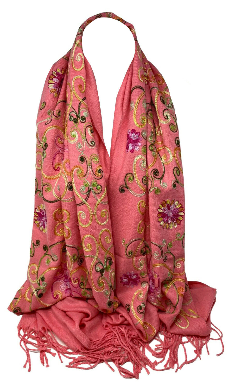 MATERIAL, FEEL AND SIZE: The softness and texture that your hands will love, gentle on your skin. Length Approx. 187cm with fringes width Approx. 71cm. It's soft, medium weight, and has a subtle sheen. Drapes nicely and stays wrinkle free. Rolls up and fits in your purse easily. Perfect for late summer evenings and early fall. Soft & Silky Colors.