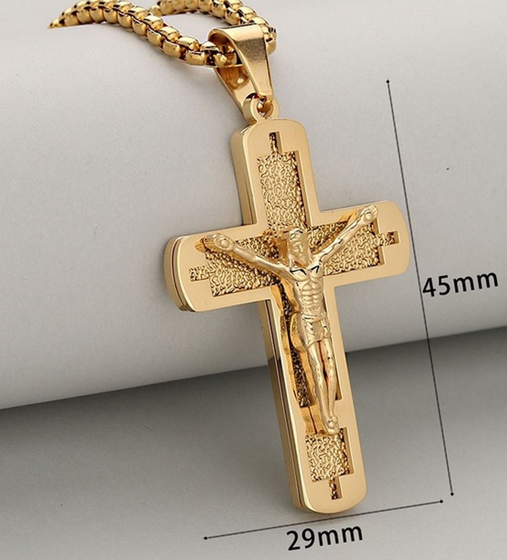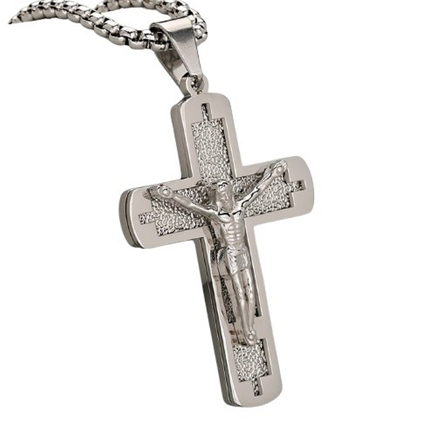 - Show your faith in style with this elegant Crucifix Cross Pendant Necklace, designed with a detailed Jesus figure for a bold and spiritual look. Made from high-quality stainless steel, it’s durable, fade-resistant, and keeps its shine for years.