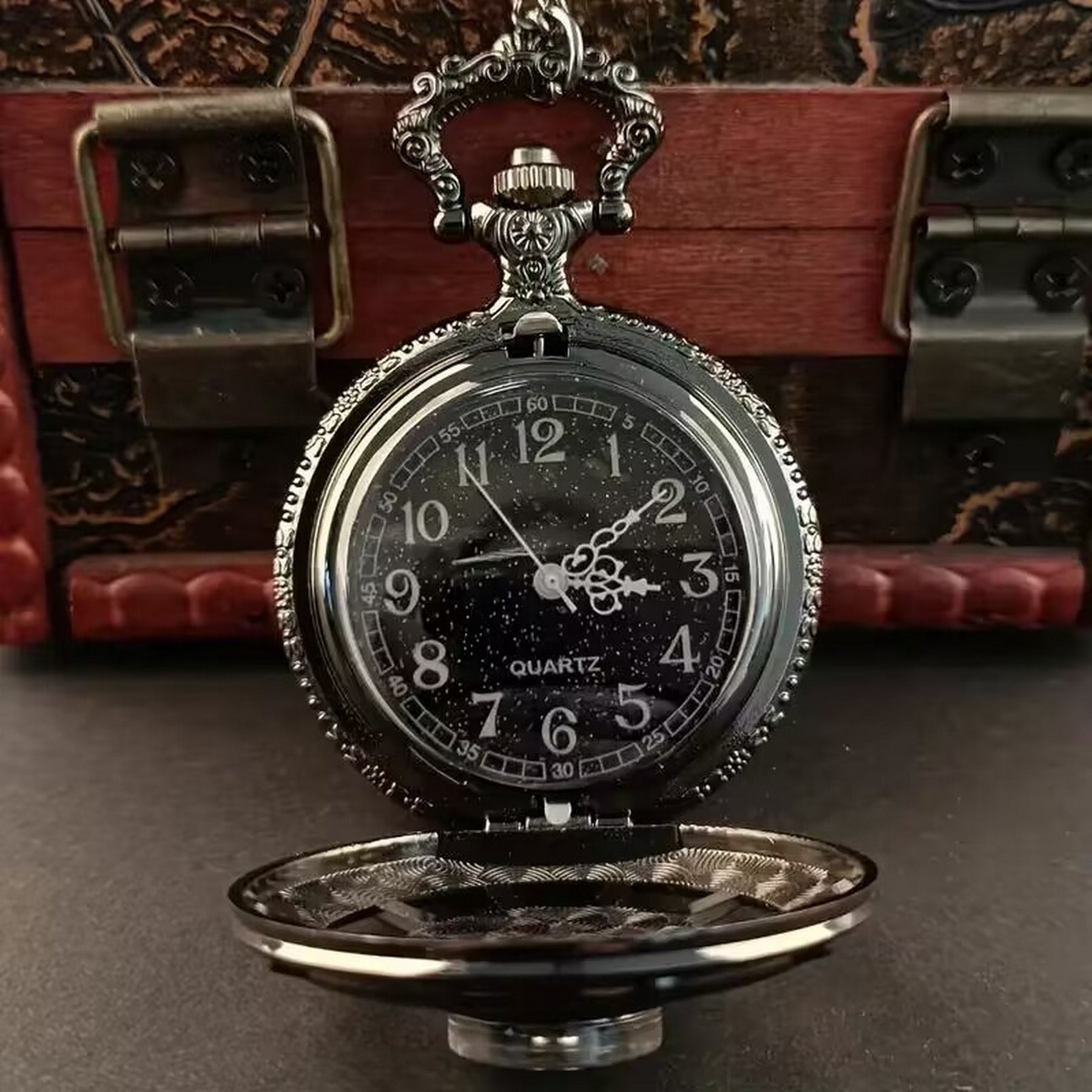 Feature highlights: This vintage pocket watch combines retro design with quartz precision, making it ideal for gifting or personal use. The alloy case and transparent glass create a distinctive design, while the 47mm dial ensures easy readability. Lightweight at 80g, its round shape and durable construction support long-lasting wear. With no waterproof feature, it suits dry environments best.