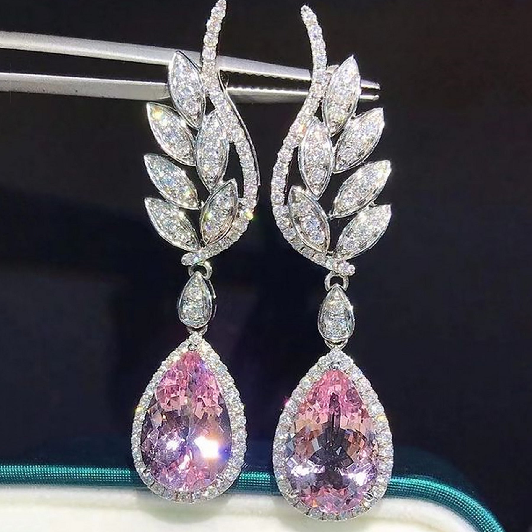 Women’s Full Cubic Zirconia Angel Wings Pink Pear Shaped Dangle Earrings Cubic Zirconia Bling Crystal Wedding Party Jewelry, Fashion Jewellery, Pendant Earrings