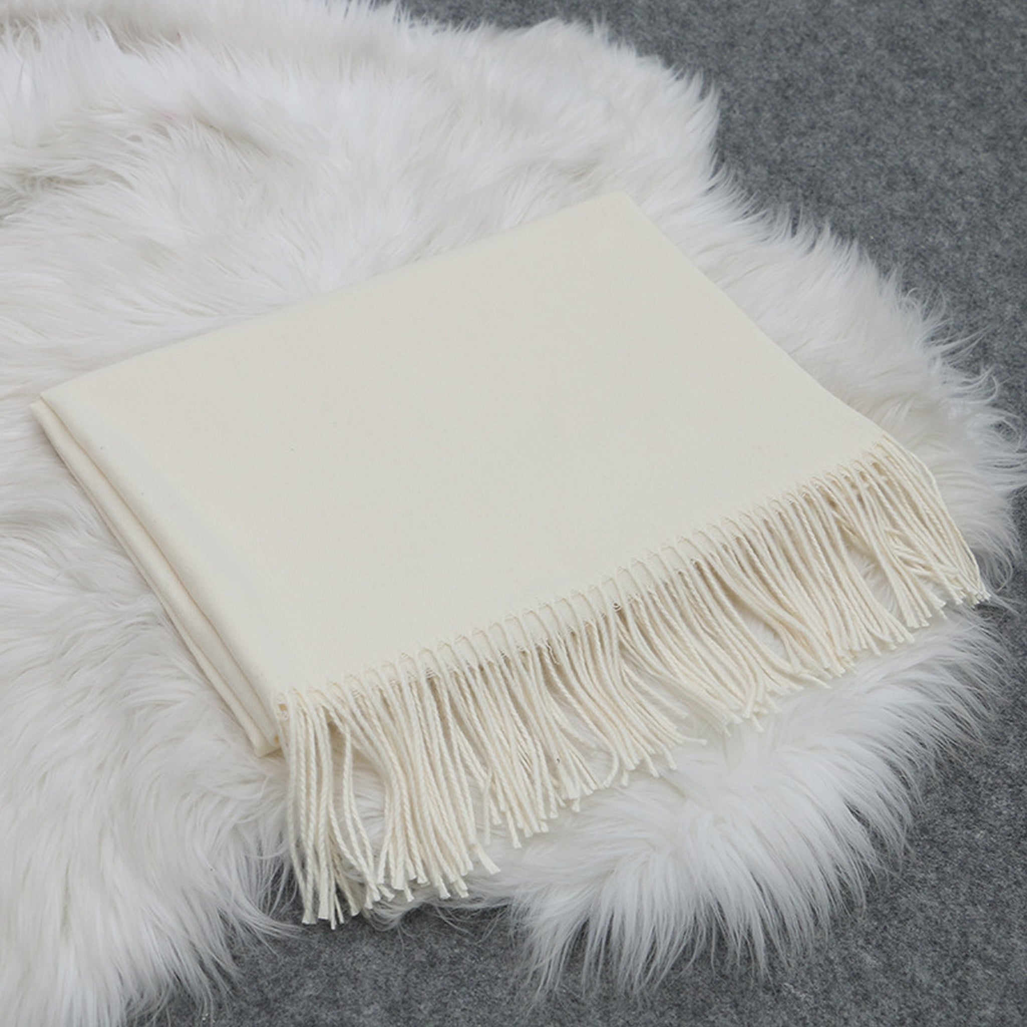 Rectangular, 180cm x 65cm with approx. 4-inch fringe/tassels. It is a large winter scarf and can also be used as small blanket on sofa, during travel, in the office or other air-conditioned spaces.