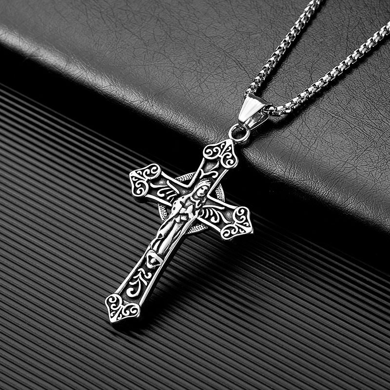This beautifully crafted crucifix pendant necklace showcases a detailed Jesus figure set against an ornate cross with elegant scrollwork patterns. The antique silver-tone finish, combined with darkened accents, highlights the intricate engraving and adds a classic vintage appeal. Paired with a strong and comfortable chain, this necklace is perfect for daily wear or special religious occasions. A timeless symbol of faith and devotion, it makes a thoughtful and meaningful gift for yourself or a loved one.