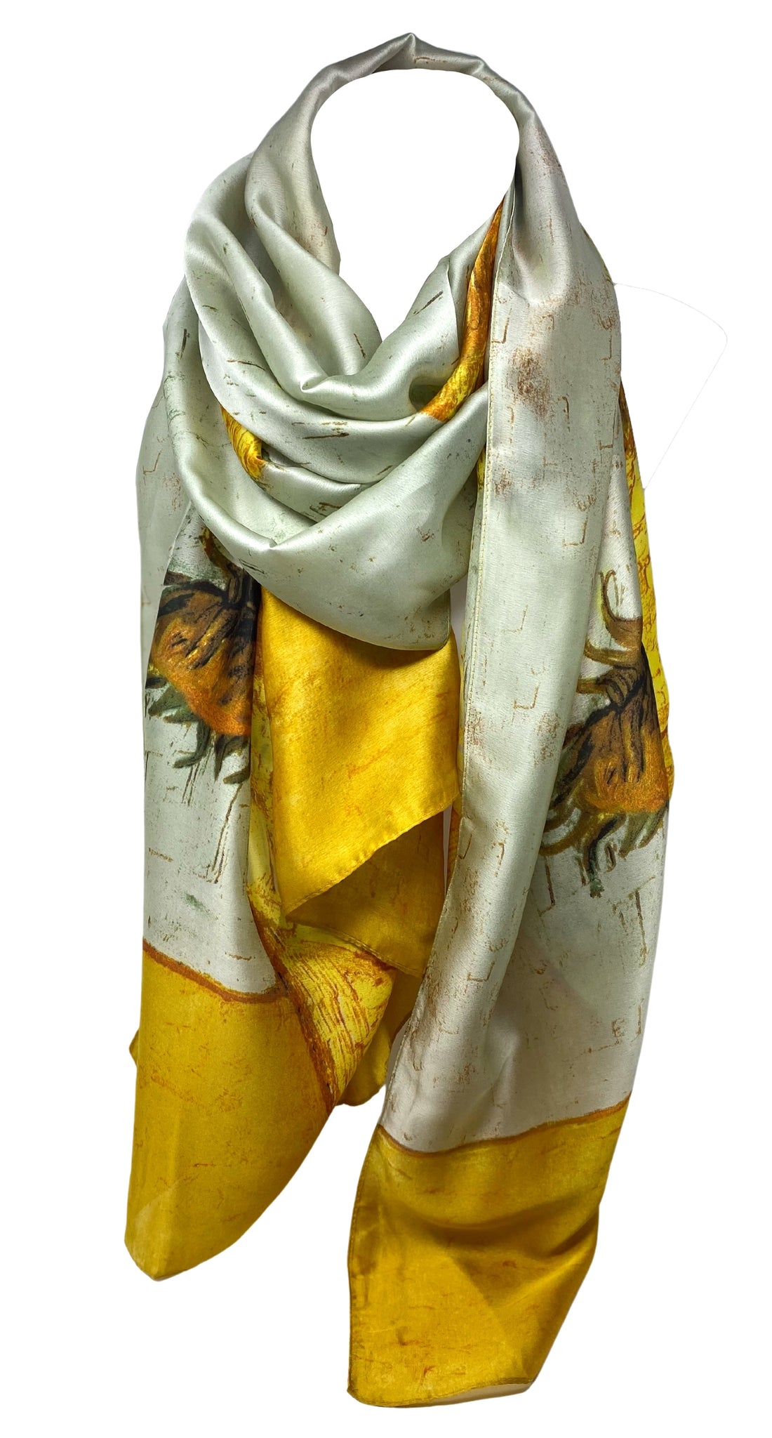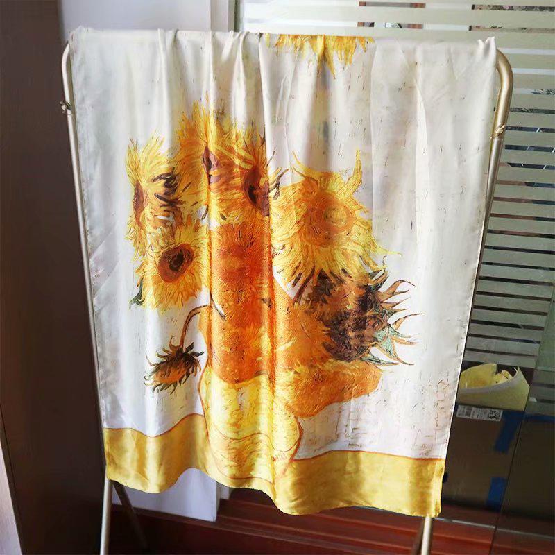Large Silk Women Scarf, Sunflower Print Summer Silky Feel Head Wrap Shawl, Light Weight Fashion Neck Scarves for Ladies